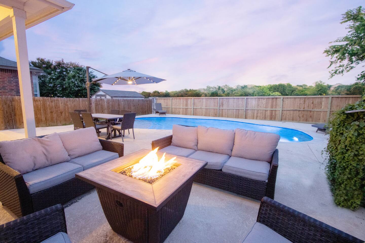 This luxurious house, nestled in the vibrant Alamo Ranch neighborhood, serves as the perfect sanctuary for an unforgettable visit to the city. The open-concept living area is where you'll spend most of your time creating lasting memories with your loved ones. Unwind in the relaxing living room and watch a movie while the chefs prepare delicious homemade meals in the fully-equipped kitchen. After a full day of exploring and San Antonio activities, you'll want to rest and rejuvenate for the next adventure. We've prepared four comfortable bedrooms to rest and recharge, providing all the comfort you need to continue writing your Texas fairy tale. But you don't have to leave the comfort of your home to catch a breath of fresh air and soak up the Texan sun! The beautiful backyard that sits up next to a green belt, full of trees, makes for a very peaceful and relaxing view when sitting on the back porch. The backyard boasts a high-end swimming pool, lounge TV area, and a BBQ grill, offering a stunning oasis you'll enjoy with your family and friends. Whether your goal is to explore the city or have fun, you'll find more than enough luxury in this house to make you never want to leave. ★ LIVING ROOM + OFFICE ★ Immerse yourself in the comfort of the living room, where you can watch the latest episode of your favorite TV show, take a break, and more, all while enjoying the modern open floor plan living area. ✔ Two Comfortable Leather Recliner Sofas ✔ Smart TV with a Bluetooth Soundbar ✔ Comfy Sofa Chairs ✔ Stylish Reading Lamp ✔ Work Space (Desk, Chair) If you need to check your email or attend work, set up your laptop at the designated workspace by the kitchen. ✔ Office Space (iMac, Desk, Chair) ★ KITCHEN & DINING ★ The open-concept living area continues with a fully-equipped kitchen and dining area, perfect for preparing and enjoying family meals. The kitchen boasts an upscale contemporary design with spacious countertops, a central kitchen bar, and modern amenities, providing everything you need to create delicious dishes using fresh ingredients from the market. ✔ Microwave ✔ Stove ✔ Oven ✔ Toaster ✔ Blender ✔ Coffee Maker ✔ Double-Door Refrigerator/Freezer ✔ Dishwasher ✔ Sink - Hot & Cold Water ✔ Plates ✔ Glasses ✔ Silverware ✔ Pots & Pans Begin your day on the right foot by enjoying a delicious breakfast and a cup of coffee at the kitchen counter. And when it's time for lunch or dinner, the dining table provides the perfect setting to gather and enjoy a family meal. ✔ Dining Table with Seating for 6 ✔ Kitchen bar with Seating for 2 ★ SLEEPING ARRANGEMENTS – 4 BEDROOMS ★ Four bedrooms offer the comforts needed to rest and relax after a fabulous day exploring the city. Get those precious hours of sleep; tomorrow is a new and exciting day! ♛ Master Bedroom: King-Size Bed, Smart TV ♛ Bedroom 2: King-Size Bed ♛ Bedroom 3: Double Bed ♛ Bedroom 4: Double Bed + Single Bed All bedrooms are equipped with a similar set of amenities. ✔ Premium Pillows, Linens, and Sheets ✔ Closets with Hangers and Shelves ✔ Dressers with Spacious Drawers ✔ Night Stands with Reading USB Lamps ★ BATHROOMS ★ The home features an ensuite bathroom in the master bedroom and an additional full bathroom that serves the other bedrooms. A half-bathroom is also conveniently located off the living area for added convenience. To ensure that you have a comfortable and carefree stay, we have provided essential toiletries and fresh towels in each bathroom. ✔ Walk-In Shower + Separate Bathtub with a Shower (Master Bath) ✔ Bathtub with a Shower ✔ Vanity (Double in the Master Bath) ✔ Mirror ✔ Toilet ✔ Towels ✔ Hair Dryer ✔ Essential Toiletries ★ BACKYARD ★ Whether you're seeking a peaceful swim, an alfresco dining experience, or a cozy evening by the fire pit, our backyard promises relaxation and entertainment. It's the perfect place to unwind and create lasting memories during your San Antonio stay. ✔ Luxury Swimming Pool ✔ Dining Table with Seating for 6 ✔ Fire Pit with a Lounge Seating Area ✔ Smart TV with a Bluetooth Soundbar ✔ Sun Lounges ✔ Charcoal BBQ Grill If you have any questions about our stylish home, please don't hesitate to ask. We'd be happy to assist in any way we can. House rules. - We've put a lot of love in our place so please be respectful of it. - No pets allowed. A $300 per pet charge will be added for any undisclosed pets. - No smoking inside the home. A $300 charge will be added for smoking in the home. - No parties or events. Unapproved guests and/or parties/gatherings can result in immediate eviction. - An earlier checkin or late checkout may be possible depending on our other bookings and can only be confirmed 24 hours in advance. *Any unauthorized early check-ins or late check-outs will result in a fee of $10 per every 15 mins. - A $50 charge will be added for lost or stolen keys. - Please be mindful of the neighbors. Quiet time begins to 10 PM. *** Do not flush wipes or feminine products down the toilet. Toilet paper