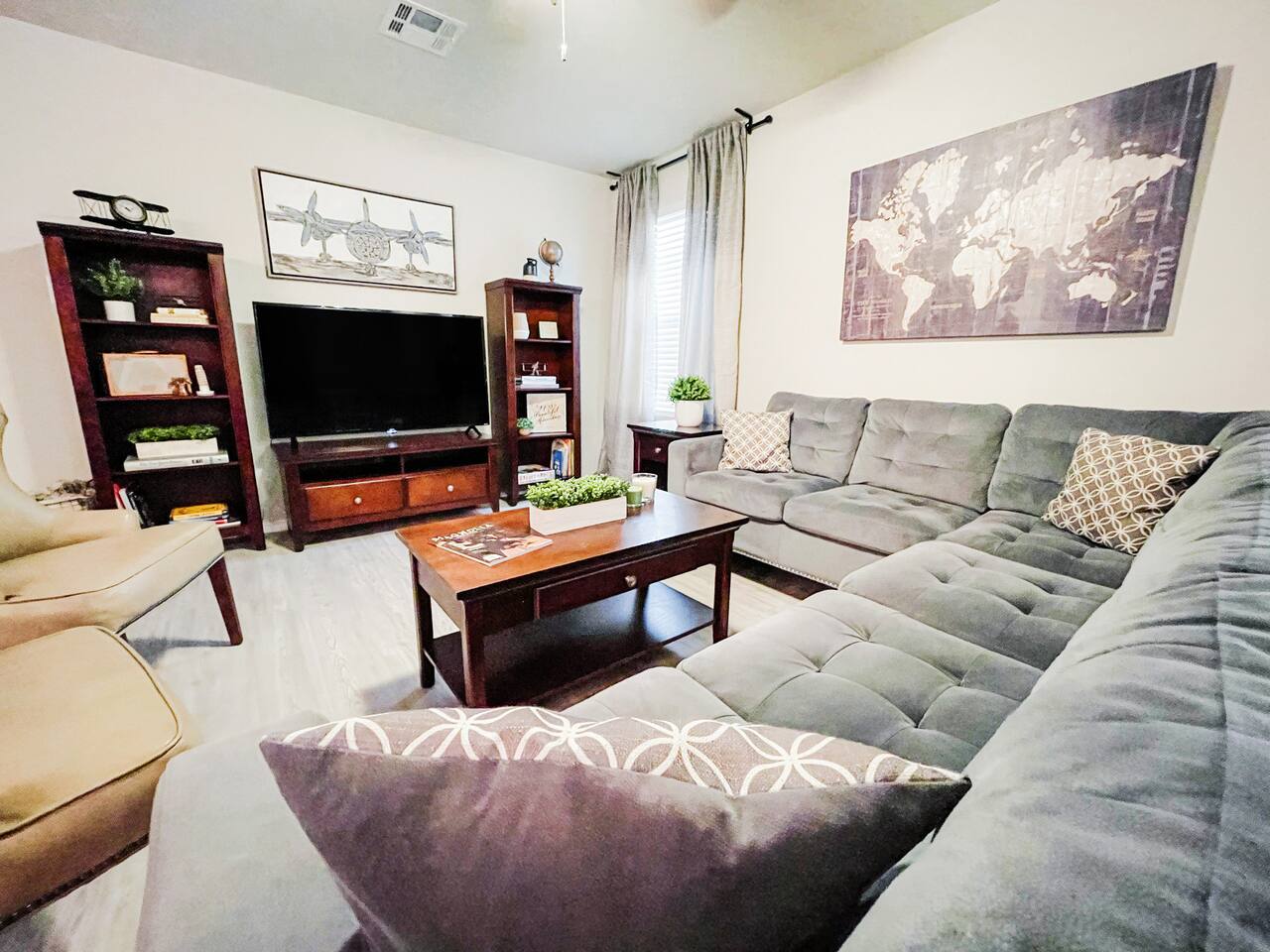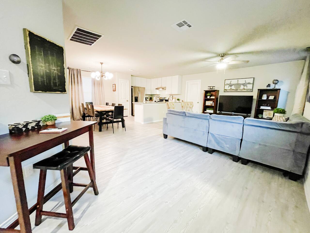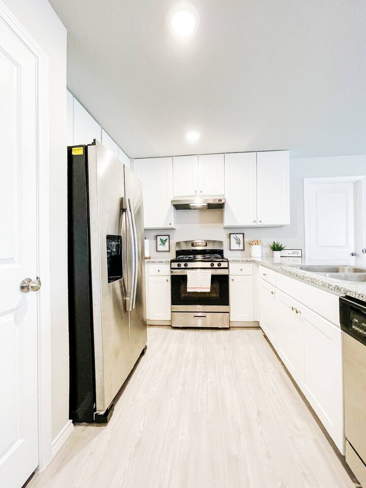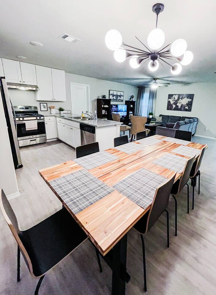 The house is in San Antonio, Texas's vibrant and culturally rich Los Jardines neighborhood. ž As you stroll through the neighborhood, you'll immediately notice the beautiful architecture that reflects the area's rich history and heritage. The houses and buildings blend traditional Spanish and Mexican influences, creating a captivating and picturesque scene at every corner. Los Jardines is renowned for its captivating gardens, which have earned it its name, meaning "The Gardens" in Spanish. The streets are lined with vibrant flowers, blooming plants, and towering trees that provide shade on warm Texas days. The well-maintained gardens offer a tranquil environment, making it the perfect place for a leisurely walk or a peaceful moment of reflection. This neighborhood is also home to several charming local businesses and eateries. From cozy cafes serving authentic Tex-Mex cuisine to boutique shops showcasing handmade crafts and local artwork, Los Jardines offers every visitor a delightful array of experiences. Take the time to explore the unique shops and sample the delicious food, and you'll find yourself immersed in the flavors and culture of San Antonio. If you're a history enthusiast, Los Jardines has a rich past to explore. The neighborhood is near San Antonio's most significant historical landmarks, such as The Alamo and the San Antonio Missions National Historical Park. Take a short trip to these iconic sites and delve into the city's storied past. For nature lovers, Los Jardines offers easy access to the picturesque San Antonio Riverwalk. This renowned urban oasis winds its way through the city's heart, providing a scenic pathway for leisurely walks or boat rides. Enjoy the stunning views of the river and the surrounding flora as you soak in the serene ambiance. This area is situated close to the is home to the esteemed Lackland Air Force Base, offering a perfect home for US Airmen and proud families coming to watch them graduate. Whether you're in town for a visit to the Lackland Air Force Base, delving into the historical landmarks of downtown, or enjoying the vibrant atmosphere of the River Walk, San Antonio has something to offer for every guest. Here are some places of interest you'll be looking to visit during your stay. ✔ Lackland Air Force base (10 min away) ✔ SeaWorld San Antonio (12 min away) ✔ Hemisphere Park (12 min away) ✔ Alamodome (12 min away) ✔ River Walk (14 min away) ✔ River Center Mall (14 min away) ✔ The Alamo (16 min away) ✔ San Antonio Zoo (16 min away) ✔ Japanese Tea Garden (16 min away) ✔ Downtown San Antonio (16 min away) ✔ Botanical Garden (20 min away) ✔ Mitchell Lake Audubon Center (20 min away) ✔ Missions National Historical Park (22 min away) ✔ Six Flags Fiesta Texas (24 min away) ✔ Santikos Entertainment Palladium (24 min away) ✔ iFLY Indoor Skydiving (26 min away) ✔ Natural Bridge Caverns (42 min away) ✔ Schlitterbahn (46 min away) ***Distance times are calculated if traveling by car.
