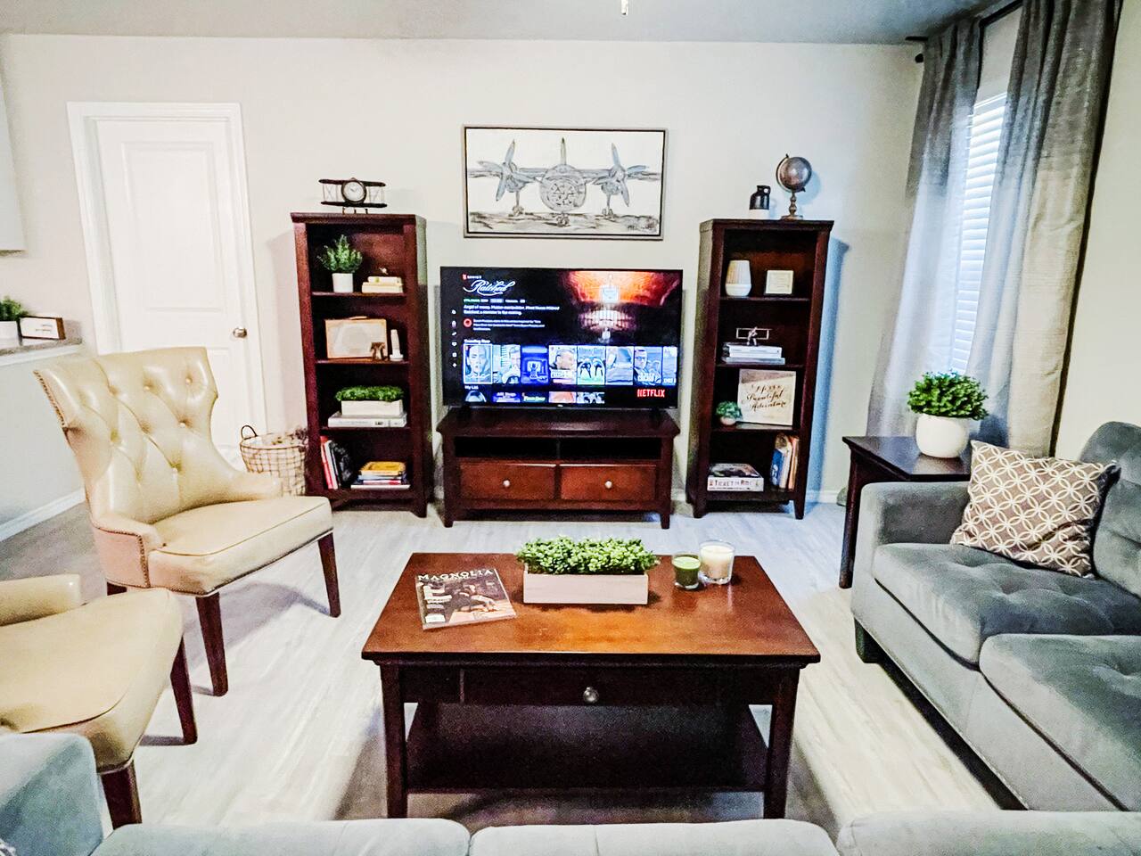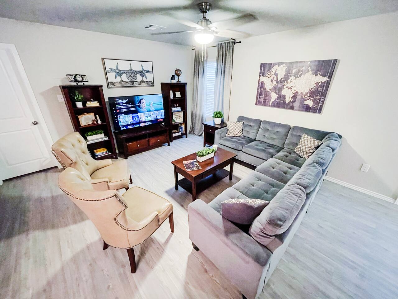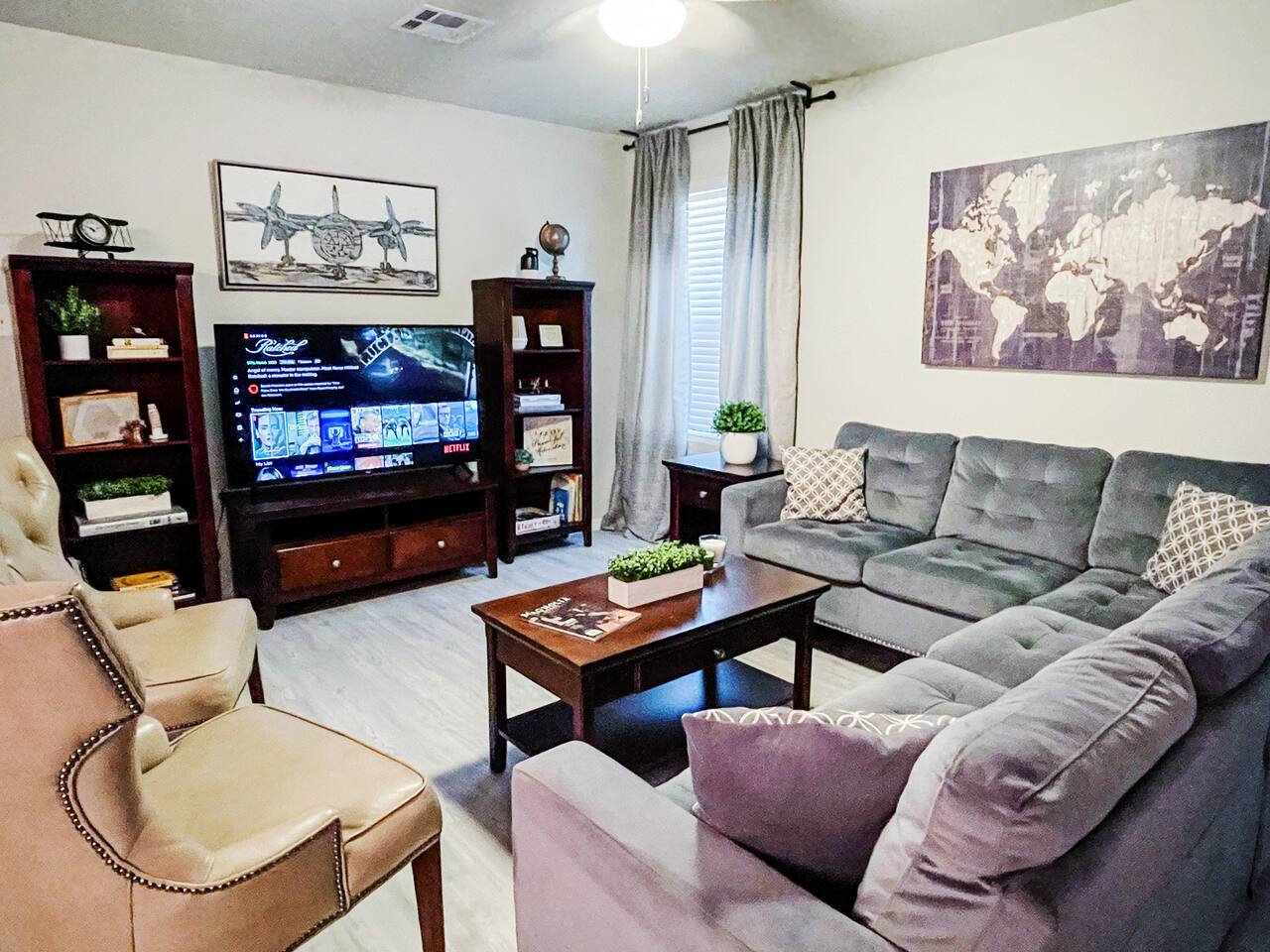 The house is in San Antonio, Texas's vibrant and culturally rich Los Jardines neighborhood. ž As you stroll through the neighborhood, you'll immediately notice the beautiful architecture that reflects the area's rich history and heritage. The houses and buildings blend traditional Spanish and Mexican influences, creating a captivating and picturesque scene at every corner. Los Jardines is renowned for its captivating gardens, which have earned it its name, meaning "The Gardens" in Spanish. The streets are lined with vibrant flowers, blooming plants, and towering trees that provide shade on warm Texas days. The well-maintained gardens offer a tranquil environment, making it the perfect place for a leisurely walk or a peaceful moment of reflection. This neighborhood is also home to several charming local businesses and eateries. From cozy cafes serving authentic Tex-Mex cuisine to boutique shops showcasing handmade crafts and local artwork, Los Jardines offers every visitor a delightful array of experiences. Take the time to explore the unique shops and sample the delicious food, and you'll find yourself immersed in the flavors and culture of San Antonio. If you're a history enthusiast, Los Jardines has a rich past to explore. The neighborhood is near San Antonio's most significant historical landmarks, such as The Alamo and the San Antonio Missions National Historical Park. Take a short trip to these iconic sites and delve into the city's storied past. For nature lovers, Los Jardines offers easy access to the picturesque San Antonio Riverwalk. This renowned urban oasis winds its way through the city's heart, providing a scenic pathway for leisurely walks or boat rides. Enjoy the stunning views of the river and the surrounding flora as you soak in the serene ambiance. This area is situated close to the is home to the esteemed Lackland Air Force Base, offering a perfect home for US Airmen and proud families coming to watch them graduate. Whether you're in town for a visit to the Lackland Air Force Base, delving into the historical landmarks of downtown, or enjoying the vibrant atmosphere of the River Walk, San Antonio has something to offer for every guest. Here are some places of interest you'll be looking to visit during your stay. ✔ Lackland Air Force base (10 min away) ✔ SeaWorld San Antonio (12 min away) ✔ Hemisphere Park (12 min away) ✔ Alamodome (12 min away) ✔ River Walk (14 min away) ✔ River Center Mall (14 min away) ✔ The Alamo (16 min away) ✔ San Antonio Zoo (16 min away) ✔ Japanese Tea Garden (16 min away) ✔ Downtown San Antonio (16 min away) ✔ Botanical Garden (20 min away) ✔ Mitchell Lake Audubon Center (20 min away) ✔ Missions National Historical Park (22 min away) ✔ Six Flags Fiesta Texas (24 min away) ✔ Santikos Entertainment Palladium (24 min away) ✔ iFLY Indoor Skydiving (26 min away) ✔ Natural Bridge Caverns (42 min away) ✔ Schlitterbahn (46 min away) ***Distance times are calculated if traveling by car.