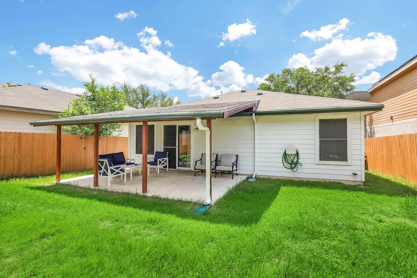 As soon as you enter this beautiful one story home, you'll be greeted by the modern yet very comfortable open-concept design living area. Its elegant design and décor complement the picturesque and tranquil location. The fully equipped kitchen combines with the dining area, where you'll cook and enjoy tasty meals with your friends and family before relaxing in the living room, setting the stage for unforgettable evenings. Natural light bursts through many windows, accenting the tastefully chosen décor and enriching the pleasant setting. Unwind in three cozy bedrooms featuring comforts and amenities that allow you to rest after exploring exciting San Antonio attractions and landmarks. But wait! The best is yet to come! Step out onto the backyard patio to catch a breath of fresh air, gaze at the beautiful surroundings, and relax while the children play in the spacious, fully fenced backyard. There's so much to do in this inviting house. We look forward to you experiencing its complete comfort and coziness. ★ LIVING ROOM + TV AREA ★ It immediately feels like home! Find your place on the comfy sofa, cuddle up with a good book, or discuss your upcoming seaside adventures. ✔ Three Comfortable Sofas with Pillows & Throw Blankets ✔ Smart TV ✔ Coffee Tables ★ KITCHEN & DINING ★ The fully equipped kitchen features modern appliances for preparing delicious snacks, breakfasts, or three-course gourmet dinners. Ample countertops and the central kitchen island offer plenty of room to unleash your cooking creativity. ✔ Microwave ✔ Stove ✔ Oven ✔ Coffee Bar (Keurig Machine, Drip Coffee Maker, Complimentary Coffee & Tea) ✔ Double-Door Refrigerator/Freezer ✔ Dishwasher ✔ Sink - Hot & Cold Water ✔ Plates ✔ Glasses ✔ Pots & Pans ✔ Silverware Unwind and catch up with your loved ones in the backyard while the food is getting ready. When done, serve it on the dining table and enjoy a delicious meal in an inviting and warm atmosphere. ✔ Breakfast Table with Seating for 4 ★ SLEEPING ARRANGEMENTS – 3 BEDROOMS ★ After an exciting day of sightseeing, you will look to rest for an equally entertaining tomorrow. Once you are ready to relax, please make your way to these comfortable bedrooms. ♛ Master Bedroom: Queen-Size Bed, Ensuite Bathroom ♛ Bedroom 2: One Queen-Size Bed, One Single Bed ♛ Bedroom 3: One Full-Size Bed All bedrooms share a similar set of amenities. ✔ Premium Mattresses, Linens, Sheets, and Pillows ✔ Closets with Hangers and Shelves (Walk-In in Master) ✔ Dressers with Spacious Drawers ✔ Night Stands with Reading Lamps ★ BATHROOMS ★ In addition to the master bedroom's ensuite bathroom, the accommodating house boasts another full bath catering to the remaining bedroom. All are stocked with essential toiletries and pampering towels to ensure a carefree stay. ✔ Bathtub with a Shower (Master Bath) ✔ Bathtub with a Shower ✔ Mirror ✔ Toilet ✔ Towels ✔ Hair Dryer ✔ Essential Toiletries ★ OUTDOORS ★ A family getaway would not be complete without a private space from where you can take in the serenity and catch a breath of fresh air. Enjoy a refreshing drink while relaxing under the covered patio.. ✔ Outdoor Seating for 6 ✔ Covered Patio ✔ Spacious Lawn Find your happiness in this attractive San Antonio getaway. It offers a place to escape the everyday hustle and bustle, cuddle on the sofa, watch a movie, or immerse in the serenity of the gorgeous backyard. House rules. - We've put a lot of love in our place so please be respectful of it. - No pets allowed. A $300 per pet charge will be added for any undisclosed pets. - No smoking inside the home. A $300 charge will be added for smoking in the home. - No parties or events. Unapproved guests and/or parties/gatherings can result in immediate eviction. - An earlier checkin or late checkout may be possible depending on our other bookings and can only be confirmed 24 hours in advance. *Any unauthorized early check-ins or late check-outs will result in a fee of $10 per every 15 mins. - A $50 charge will be added for lost or stolen keys. - Please be mindful of the neighbors. Quiet time begins to 10 PM. *** Do not flush wipes or feminine products down the toilet. Toilet paper i TRASH DAYS i (General Trash/Garbage) You will see a a brown trash bin. (Recycle) Blue trash bin for recyclables. (Organics) Green trash bin for organics. Wednesdays- Trash days for the brown bin (General Trash) Mondays- Blue recycle bin and Green Organics bin Feel free to take the out the bin the night before. As requested by the waste management service, they ask to please have the trash cans out on the curb those days no later than 6 am (Handle to the curb). If you are unsure which trash can to use then please dispose in the brown trash can. Disposing of trash in the wrong trash can will incur an additional fee of $75. Please let us know if you have any questions regarding our retreat. Happy Travels!