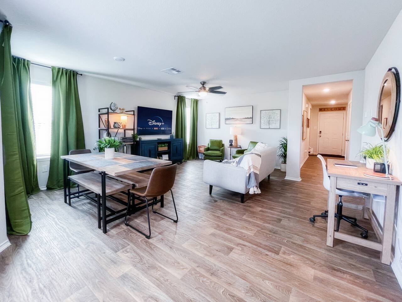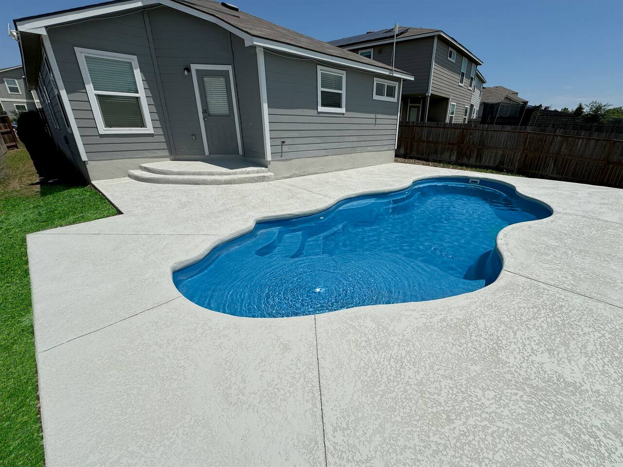 Summary Description Welcome to the stylish 3BR 2Bath house nestled in the brand-new community near the Lackland Air Force Base. Attend the graduation at the Base and enjoy the lovely ambiance from the private backyard while being close to the vibrant downtown area, Alamo, SeaWorld, restaurants, shops, attractions, and much more! ✔ 3 Comfortable Bedrooms ✔ Open Design Living ✔ Fully Equipped Kitchen ✔ Backyard ✔ Smart TVs ✔ High-Speed Wi-Fi ✔ Workspace ✔ Laundry Room ✔ Free Parking ✔ Pool Learn