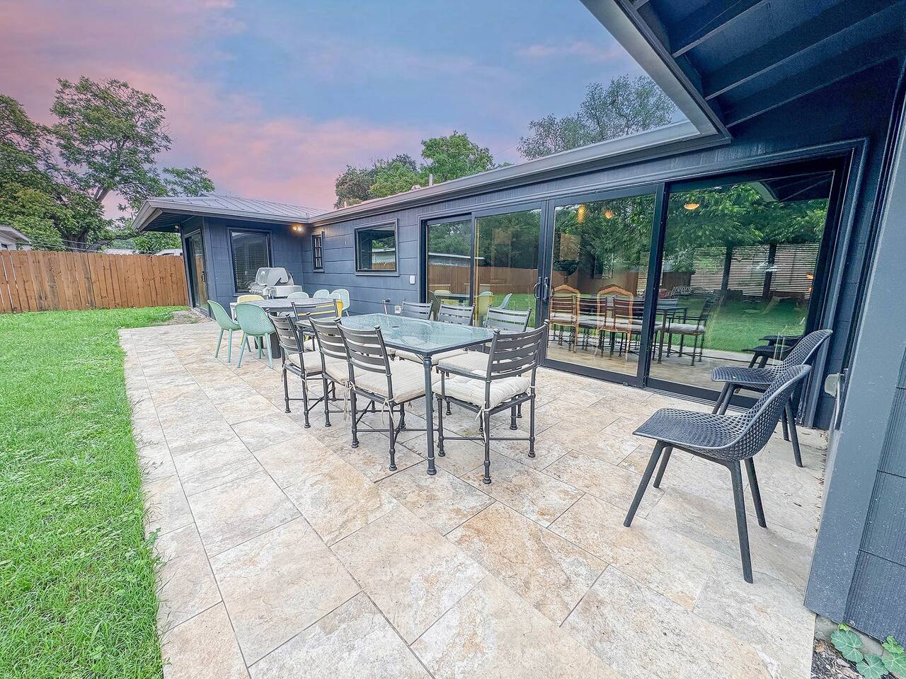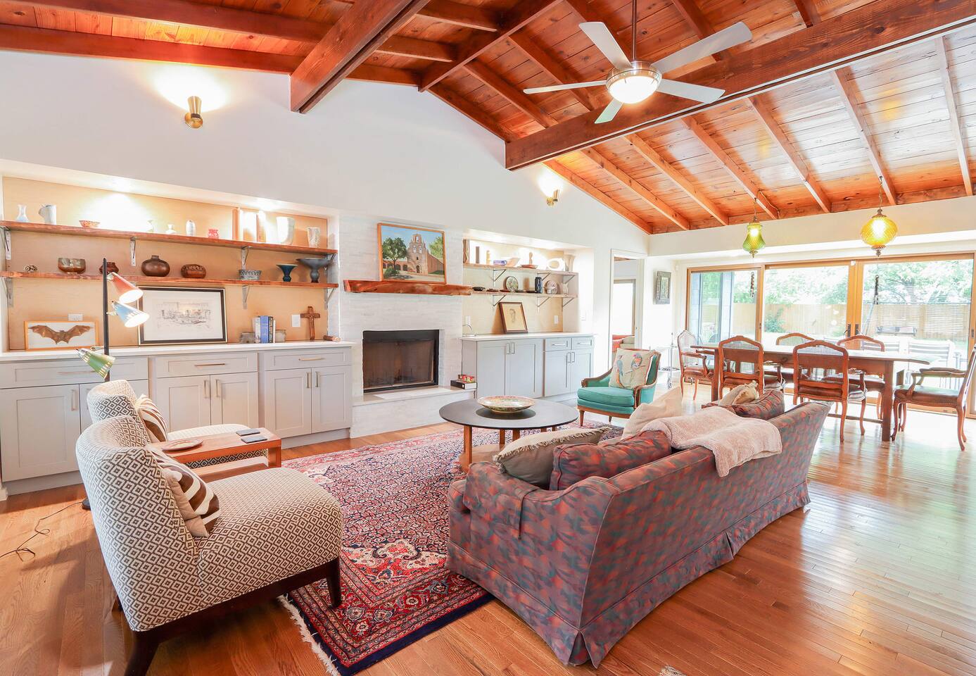 Located in the Alamo Heights area, this stylish Mid-century modern home has been updated with a contemporary style and flair. It is centrally located in the heart of San Antonio and offers comfort and convenience to some of the city’s best attractions. It has four bedrooms that can accommodate up to eight guests. The common area provides a cozy space to relax with a wood-burning fireplace and plenty of windows for natural sunlight. Enjoy preparing meals in the gourmet kitchen with plenty of indo