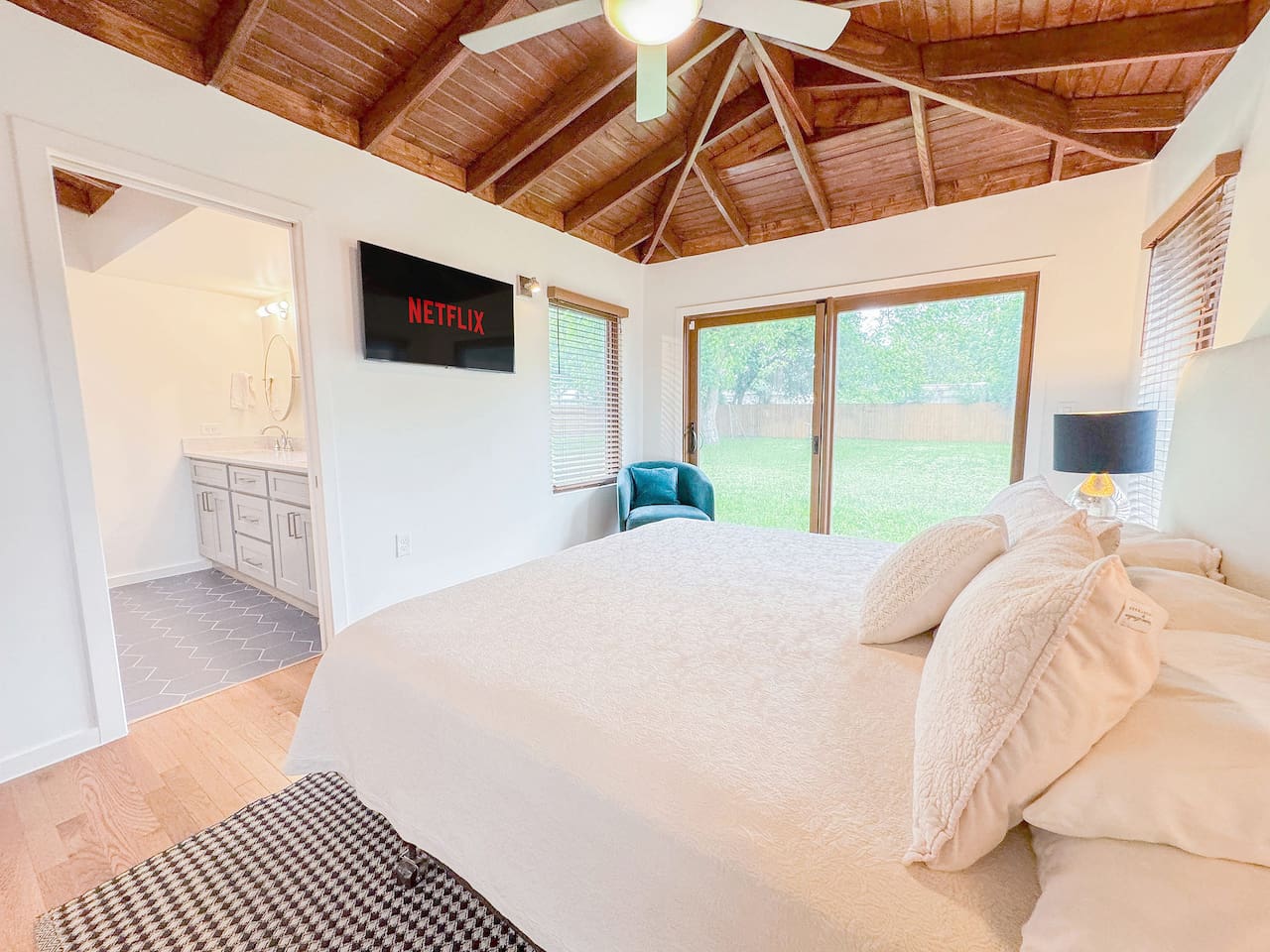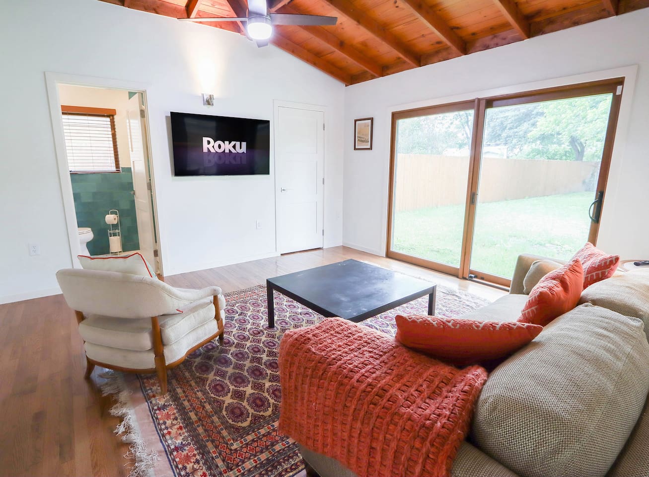 This vintage house, situated in the classic Alamo Heights area, provides the perfect space to relax and recharge for a memorable visit to the city. The open-concept living area is a perfect spot to gather with your loved ones to plan your next adventure or cool down after a busy day around town. Retreat to a secondary living space that also doubles as one of the bedrooms to unwind with a good movie or whip up a fantastic meal in the fully appointed kitchen. After a full day of San Antonio activities, you'll want to rest and rejuvenate for the next experience. We've prepared four comfortable bedrooms, providing all the comfort you need to continue writing your Texas fairy tale. Whether you’re here for business or vacation, you'll find more than enough coziness in this house to enhance your stay. ★ LIVING ROOM ★ Lounge in the comfort of the living room, where you can relax, socialize, and more, all while enjoying the modern open floor plan living area. ✔ Three stylish chairs ✔ Comfy Sofa ✔ Modern Reading Lamp ✔ Ceiling fan with overhead lighting ✔ Three large windows with blinds for privacy ★ KITCHEN & DINING ★ The open-concept living area continues with a fully-equipped kitchen and dining area, perfect for preparing and enjoying family meals. The kitchen features an upscale contemporary design with spacious countertops, a professional grade ZLINE gas stove, and modern amenities, providing everything you need to create delicious dishes using fresh ingredients from the nearby HEB Central Market, an upscale shopping experience for exquisite tastes. ✔ Stove ✔ Oven ✔ Toaster ✔ Coffee Maker ✔ Double-Door Refrigerator/Freezer ✔ Dishwasher ✔ Sink - Hot & Cold Water ✔ Plates ✔ Glasses ✔ Silverware ✔ Pots & Pans Begin your day on the right foot by enjoying a delicious breakfast and a cup of coffee at the kitchen counter. And when it's time for lunch or dinner, the dining table provides the perfect setting to gather and enjoy a family meal. ✔ Dining Table with Seating for 6 ✔ Kitchen bar with Seating for 2 ★ SLEEPING ARRANGEMENTS – 3 BEDROOMS ★ Three bedrooms offer the comforts needed to rest and relax after a fabulous day exploring the city. Get those precious hours of sleep; tomorrow is a new and exciting day! ♛ Master Bedroom: King-Size Bed, Smart TV, Access to backyard ♛ Bedroom 2: Queen-Size Bed ♛ Bedroom 3: Queen-Size Bed ♛2nd Living room : Queen Sofa Sleeper, Smart TV All bedrooms are equipped with a similar set of amenities. ✔ Premium Pillows, Linens, and Sheets ✔ Closets with Hangers and Shelves ✔ Night Stands with Reading Lamps ★ BATHROOMS ★ The home features an ensuite bathroom in the master bedroom, as well as in two other bedrooms. A half-bathroom is also conveniently located off the living area for added convenience. To ensure that you have a comfortable and carefree stay, we have provided essential toiletries and fresh towels in each bathroom. ✔ Walk-In Shower in all full bathrooms ✔ Vanity (Double in the Master Bath) ✔ Mirror ✔ Toilet ✔ Towels ✔ Hair Dryer ✔ Essential Toiletries ★ BACKYARD ★ Whether you're seeking a peaceful place to relax or wanting to fire up the grill for a true Texas barbecue experience, our backyard promises relaxation with plenty of room to entertain. It's the perfect place to unwind and create lasting memories during your San Antonio stay. ✔ Dining Table with Seating for 8 ✔ Additional table with 6 chairs ✔ Large Weber gas grill ✔ Privacy fence If you have any questions about our stylish home, please don't hesitate to ask. We'd be happy to assist in any way we can. House rules. - We've put a lot of love in our place so please be respectful of it. - No pets allowed. A $300 per pet charge will be added for any undisclosed pets. - No smoking inside the home. A $300 charge will be added for smoking in the home. - No parties or events. Unapproved guests and/or parties/gatherings can result in immediate eviction. - An earlier checkin or late checkout may be possible depending on our other bookings and can only be confirmed 24 hours in advance. *Any unauthorized early check-ins or late check-outs will result in a fee of $10 per every 15 mins. - A $50 charge will be added for lost or stolen keys. - Please be mindful of the neighbors. Quiet time begins to 10 PM. *** Do not flush wipes or feminine products down the toilet. Toilet paper i TRASH DAYS i (General Trash/Garbage) You will see a a brown trash bin. (Recycle) Blue trash bin for recyclables. (Organics) Green trash bin for organics. Wednesdays- Trash days for the brown bin (General Trash) Mondays- Blue recycle bin and Green Organics bin Feel free to take the out the bin the night before. As requested by the waste management service, they ask to please have the trash cans out on the curb those days no later than 6 am (Handle to the curb). If you are unsure which trash can to use then please dispose in the brown trash can. Disposing of trash in the wrong trash can will incur an additional fee of $75.