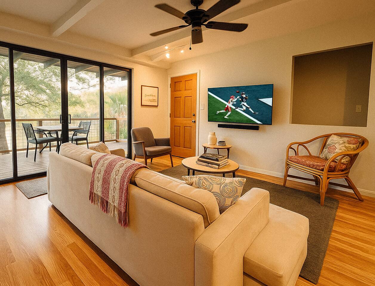 ★ CLEANING & SANITIZATION ★ Health, safety, and well-being of our guests are of utmost importance. For this reason, we use a thorough cleaning process after each check-out. ★ NO PETS ALLOWED ★ We love those little (and not so little) furry bundles of joy. Sadly, our home is not suitable to accommodate them. Unauthorized pets will incur a $300 per pet fee. ★ NO SMOKING INSIDE ★ Please refrain from smoking on the property! Any smoking evidence will result in a $300 fee for odor removal and furniture cleaning. ★ NO PARTIES/EVENTS ★ We kindly ask you to treat our home as your own to preserve its pristine condition for future guests and your return visits. ★ LAWN CARE/PEST CONTROL ★ Maintaining a healthy lawn and pest-free home is an important part of ensuring an enjoyable stay for all guests. Our properties may have bi-weekly lawn care and quarterly pest control services scheduled during your stay. Please notify us upon booking if you have any concerns. ★ EXTERIOR SECURITY CAMERA ★ This home is equipped with a front yard camera and backyard camera that begin to record and monitor when motion is detected. There are no cameras or devices that record or monitor the interior of the home.